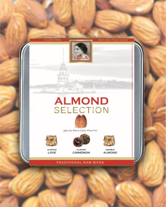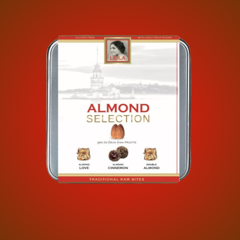 Leila 1949’s Selection Almond brings together the nourishing power and delightful flavor of almonds in an elegant presentation. Inside, you'll find chocolate-coated bars and protein-rich bites made with almond flour and other wholesome ingredients—all beautifully arranged in a stylish metal box that transforms this set into a sophisticated gift.